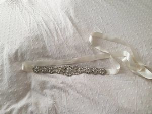 You can also have this piece made to your full waist size. Obsession Bridal is a hidden gem located on Castle Hill Co. A beautiful collection of embellished wedding dress belts for bridal gowns. Wedding dress belts sashes and headpieces. It is about the length of my hand not too heavy but well made. The hook and eye option is also available for full length belts. Please contact us for a custom order.